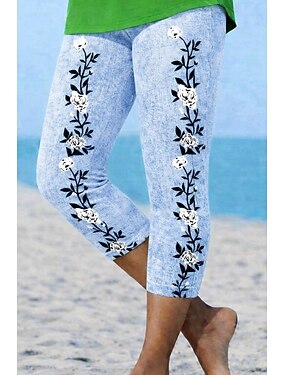 Жен. Брюки-капри Леггинсы Отпуск Винтаж Мода Капри Нормальная Графика 3D печать 3D Рисунок Мягкий Удобный Дышащий Эластичная Повседневные Отпуск Для спортивного зала Синий Лето Весна Приталенный крой