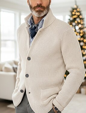 Муж. Вязаная ткань Платье-свитер Кардиган Вафельная ткань Вязать Обычные топы Трикотаж Кнопка вниз Воротник-стойка Классика Повседневные Одежда Рукав «реглан» Весна Наступила зима