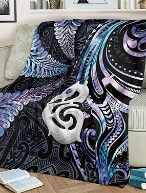 Флисовый плед для дивана с татуировкой дракона, 3D-искусство, племенной маори, полинезийский диван-кровать, декоративное теплое одеяло для домашнего декора