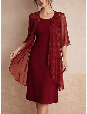 Жен. Платье средней длины Шифоновые платья Элегантный стиль Повседневные на открытом воздухе Отпуск Свободное облегание Полотняное плетение С короткими рукавами Вырез под горло Каштановый Пурпурный