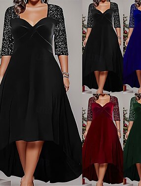 Жен. Большие размеры Платье с пайетками Сплошной цвет V-образный вырез Рукав 3/4 Весна Осень Элегантный стиль Платье средней длины Для вечеринок Свадебный гость Платье