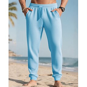 Муж. Штаны Летние штаны Пляжные штаны Кулиска Карман Эластичная талия Полотняное плетение Комфорт Дышащий Повседневные Пляж Отпуск Гавайский Богемный Синий Армейский Зеленый