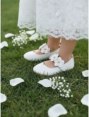 Белые детские туфли-мэри-джейн для девочек-цветочниц с двойной цветочной аппликацией, мягкие балетки в стиле принцессы из искусственной кожи для маленьких девочек, удобные туфли на низком каблуке,