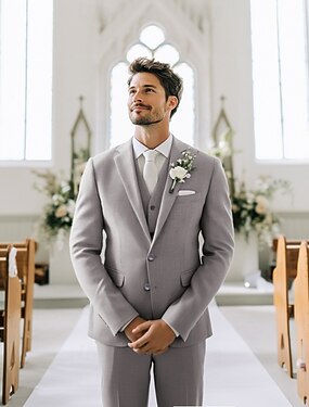 Мужской Смокинги Костюмы Свадьба на пляже Весенняя свадьба Светло-серый Весна лето Костюм Лацкан с тупым углом Мода Формальная Однотонный Стандартная посадка Набор из 3 предметов Однобортный с 2