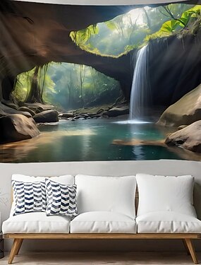 гобелен Одеяло Гобелены Пейзаж Природа 3D Искусство Осень Спальня Гостиная Общежитие Спальня в мужском общежитии "Пещера" Домашний декор