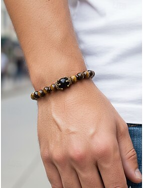 мужской браслет из натурального камня — регулируемый дизайн с бусинами и короной, доступен в нескольких цветах, идеально подходит для повседневной носки и особых случаев