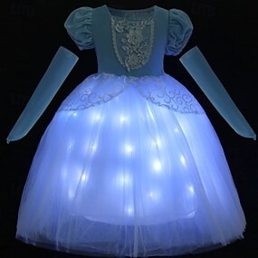 Снежная Королева Сказка Платье девушки цветка Костюм для тематической вечеринки Тюль Платья Наряжаться Светодиодный свет вверх for Девочки Детские Рождество Карнавал День детей