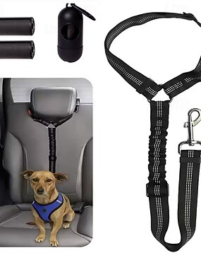 Регулируемый автомобильный поводок для собак, крепящийся к ремню безопасности автомобиля, в комплекте с портативным пакетом для уборки за собакой. Идеально подходит для поездок на внедорожниках,