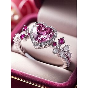 Женское кольцо в форме сердца с розовым камнем – сплав, розовые и прозрачные камни, элегантный дизайн – идеально подходит для свадеб и Дня святого Валентина.