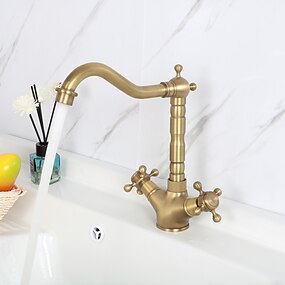 кухонный смеситель с одной рукояткой, античная латунь, одно отверстие, поворотный стандартный излив/высокий/высокий, латунный, антикварный/тресковый кухонный смеситель с линиями подачи/регулируется