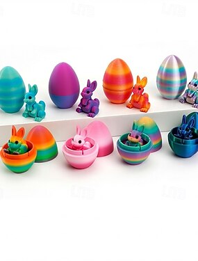 Пасхальные яйца, напечатанные на 3D-принтере, с сюрпризом в виде подвижного кролика внутри, радужная переливающаяся игрушка-сюрприз, подвижный кролик-антистресс, наполнители для пасхальных корзин для
