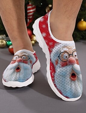 Мужские рождественские кеды с принтом Санта-Клауса, легкая дышащая повседневная обувь для праздничных вечеринок, праздничных нарядов и зимних подарков