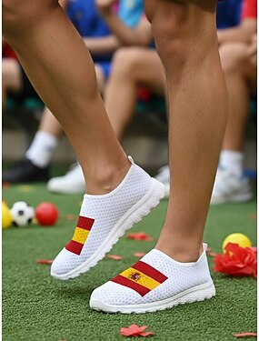Мужские слипоны с изображением испанского флага – легкая, дышащая повседневная обувь для футбольных болельщиков, ежедневных прогулок и посещения стадионов.