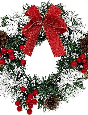 Рождественский венок с ягодами, красный, ручной работы, имитация банта, красный фруктовый венок, зимняя праздничная рождественская гирлянда, украшение, идеально подходящее для украшения дома, крыльца,