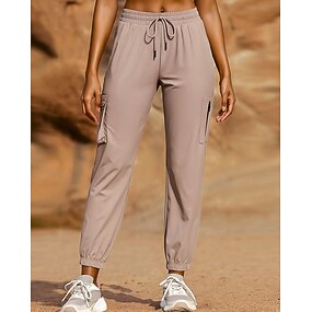Жен. спортивные штаны Брюки-карго для активного отдыха С карманами Завышенная Тренажерный зал Волейбол Разрабатывать Нижняя часть Сплошной цвет Черный Розовый Серый Виды спорта Спортивная одежда