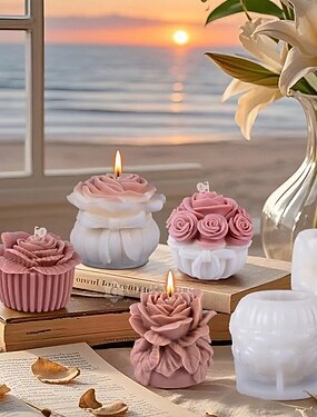 Набор из 4 силиконовых форм для свечей — создавайте уникальные дизайны с замысловатыми волнами, нежными розами, причудливыми цветами в виде мельницы и изящными маргаритками — идеально подходит для