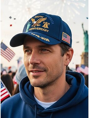 Мужская вышитая кепка - к 250-летию США, многоцветная, ко Дню независимости Америки, патриотический дизайн с орлом и статуей Свободы, регулируемая посадка, подходит для активного отдыха и праздничных мероприятий.