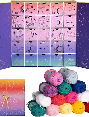 Адвент-календарь крючком 2025, 25 дней пряжи &Схемы вязания крючком с 25 клубками пряжи, которые можно использовать в качестве сюрпризов или подарков — полный набор для рождественского обратного
