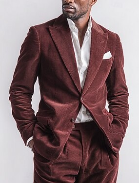 Мужской Вельветовый костюм Повседневные Бизнес Черный Бордовый Наступила зима Костюм Лацкан с тупым углом Деловые На каждый день Однотонный Узкий крой Набор из 2 предметов Однобортный с 1 пуговицей