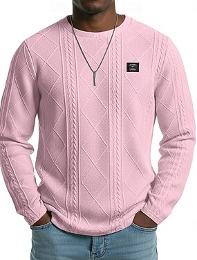Муж. Футболка Рубашка с длинным рукавом Длинный рукав Вырез под горло Весна Осень Зима Геометрический принт Полотняное плетение Пит Стрип Мода Оригинальный рисунок Классический Жаккард Вязанная