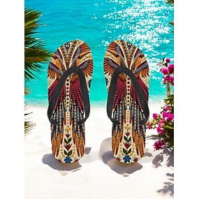 женские бохо-этнические шлепанцы - винтажные пляжные сандалии с племенным узором, удобные летние тапочки для путешествий и фестивалей