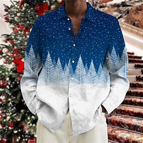 Новогодняя тематика Муж. Дед Мороз Новогодняя ёлка Рождественский подарок Рубашка Кнопка рубашка Длинный рукав Веселая на открытом воздухе Праздники Весна Осень Отложной 3D печать рубашки с воротником