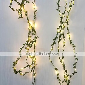 элегантная гирлянда из маленьких зеленых листьев на свадьбу, 5 м, 50 светодиодов, гирлянда из медной проволоки для домашнего декора, теплый белый цвет (работает от батареек, батарейки в комплект не