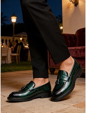 Мужские зеленые лоферы без шнурков из искусственной кожи, элегантный дизайн, идеально подходят для вечеров в курортном стиле и официальных мероприятий.