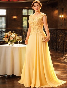 А-силуэт В пол Свадебное платье для гостей Вечернее платье Платье для матери невесты Без рукавов Круглый вырез Элегантный стиль Большие размеры