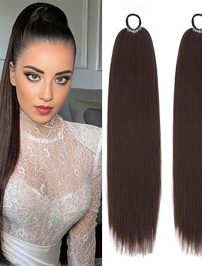 2 упаковки длинных плетеных хвостиков с резинками для волос, натуральные мягкие синтетические волосы для чернокожих женщин, прямые, обвивающие волосы, хвостик (коричневый, 24 дюйма (упаковка из 2)).