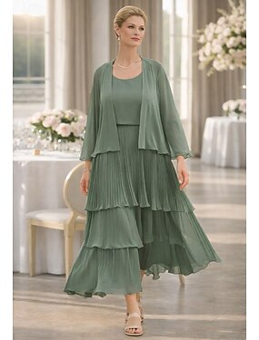Из двух частей А-силуэт Платье Костюм До щиколотки Свадебное платье для гостей Свободный силуэт Платье для матери невесты Без рукавов Длинный рукав Совок шеи Элегантный стиль Простой Украшенный