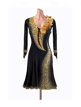 Латино Платье Стразы Жен. Для вечеринок Учебный Выступление Длинный рукав Спандекс Нейлон