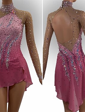 Платье для фигурного катания Жен. Девочки Катание на коньках Платья Розовый Пэчворк Открытая спина Спандекс Сетка Эластичность Учебный Профессиональный стиль Соревнование Одежда для фигурного катания
