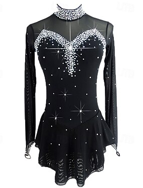 Платье для фигурного катания Жен. Девочки Катание на коньках Платья Инвентарь Черный Белый Сетка Спандекс Эластичность Соревнование Одежда для фигурного катания Ручная работа Стразы Длинный рукав