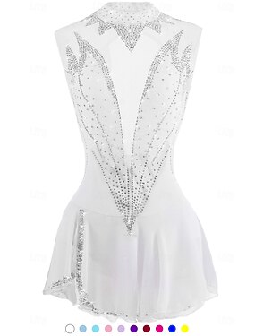 Платье для фигурного катания Жен. Девочки Катание на коньках Платья Инвентарь Белый Розовый Вино Открытая спина Сетка Спандекс Эластичность Соревнование Одежда для фигурного катания Стразы Без рукавов