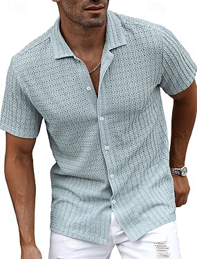 Муж. Рубашка Текстура Повседневная рубашка Кнопка рубашка Белый Светло-зеленый Хаки Абрикосовый Светло-синий С короткими рукавами Сплошной цвет Рубашечный воротник Повседневные Уличная одежда Жаккард