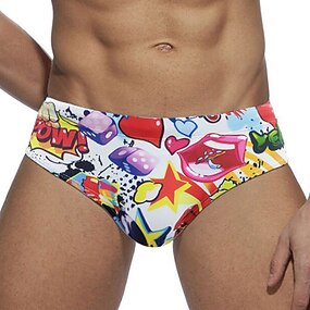 Муж. Купальники Купальные шорты Шорты Плавки С принтом Персонажи Комфорт Дышащий на открытом воздухе Повседневные На выход Спорт Гавайский Белый