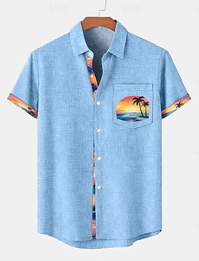 Муж. Рубашка Льняная рубашка Летняя рубашка Пляжная рубашка Кнопка рубашка Кокосовая пальма Праздники На каждый день Синий Розовый Зеленый Цвет хаки С короткими рукавами Отложной Лето Одежда