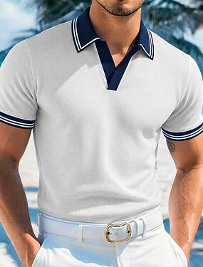 Муж. Рубашки-поло из вафельной ткани Текстура Повседневные Праздники Лацкан Ребристый воротник-поло С короткими рукавами Мода Классический Полотняное плетение Текстура Пуговицы Мягкий Лето Весна