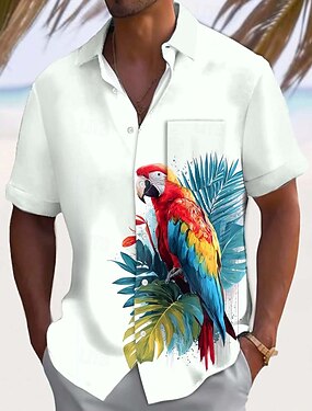 Муж. Попугай Тропические растения Цветы Гавайская рубашка Кнопка рубашка Рубашка Алоха С короткими рукавами Гавайский Повседневные Отпуск Лето Весна Отложной 3D