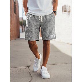 Муж. Шорты Льняные шорты Летние шорты Пляжные шорты Кулиска Эластичная талия Передний карман Полотняное плетение Комфорт Дышащий Длина колена на открытом воздухе Повседневные Праздники
