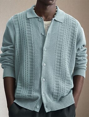 Муж. Вязаная ткань Кардиган Рельефный узор Вязать Обычные топы Кнопка вверх С отверстиями Полотняное плетение Отложной Отпуск Мода Повседневные На каждый день Одежда Весна Осень Синий M L XL
