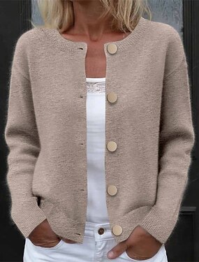 Жен. Вязаная ткань Кардиган Элегантный стиль Мода Уличный стиль Чистый цвет Хомут Пуговицы Трикотаж Длинный рукав Укороченные топы Вязать на открытом воздухе Повседневные выходные Верблюжий Осень Зима