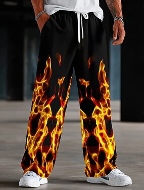 Муж. 3D-печати Пламя Штаны Повседневные брюки Мешковатые брюки Нормальная Мода Повседневная на открытом воздухе Отпуск Эластичный шнурок на талии Брюки из льняной ткани с карманами Весна Осень 3D