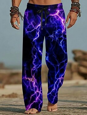 Муж. 3D-печати Молния Штаны Повседневные брюки Мешковатые брюки Нормальная Мода Дом на открытом воздухе Отпуск Эластичный шнурок на талии Брюки из льняной ткани с карманами Лето Весна 3D печать