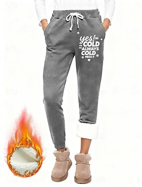 Жен. Штаны Флисовые штаны Брюки Мода Классический На каждый день Полная длина Завышенная Буквы Кулиска Карман С принтом Сохраняет тепло С защитой от ветра удобный Эластичная