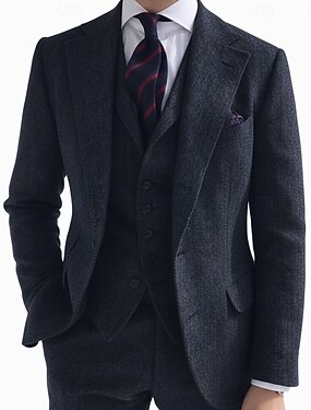 Мужской Твидовые костюмы Повседневные Бизнес Черный Светло-серый Наступила зима Костюм Лацкан с тупым углом Деловые Формальная В елочку Узкий крой Набор из 3 предметов Однобортный с 2 пуговицами