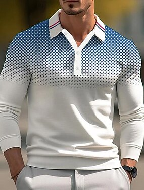 Муж. В точечку геометрический Поло Длинный рукав Футболки поло Рубашки с воротником На каждый день на открытом воздухе Одежда для спорта и отдыха 3D печать Пуговицы Весна Осень Зима