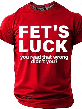 Мужская футболка с надписью "Fet's luck", вы неправильно прочитали, не так ли? Забавная футболка с юмором для взрослых, с коротким рукавом, стандартного кроя, для повседневной носки, дизайнерская