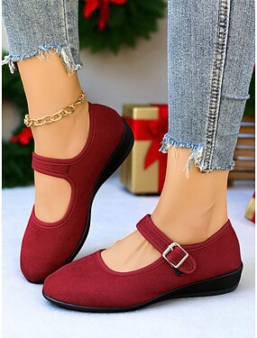женские красные туфли «Мэри Джейн» с регулируемым ремешком на пряжке, удобной нескользящей подошвой для повседневной носки и праздничных рождественских нарядов